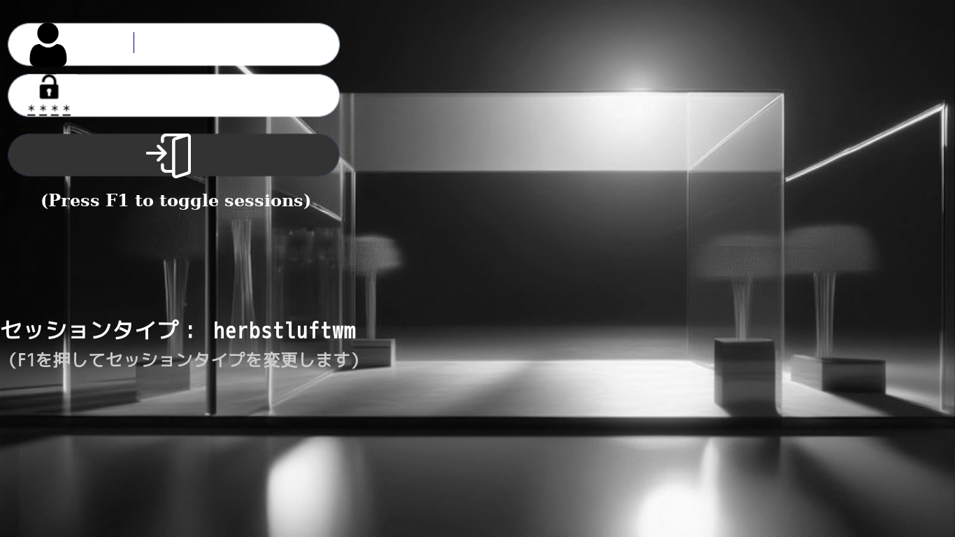 ログイン画面で F1 を押していくと「herbstluftwm」が見えます。