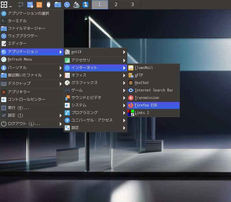 1. 概要 ブラウザとして、「Firefox」が、デフォルトでインストールされています。 2. 起動 「スタート」→「アプリケーション」→「インターネット」→「Firefox」