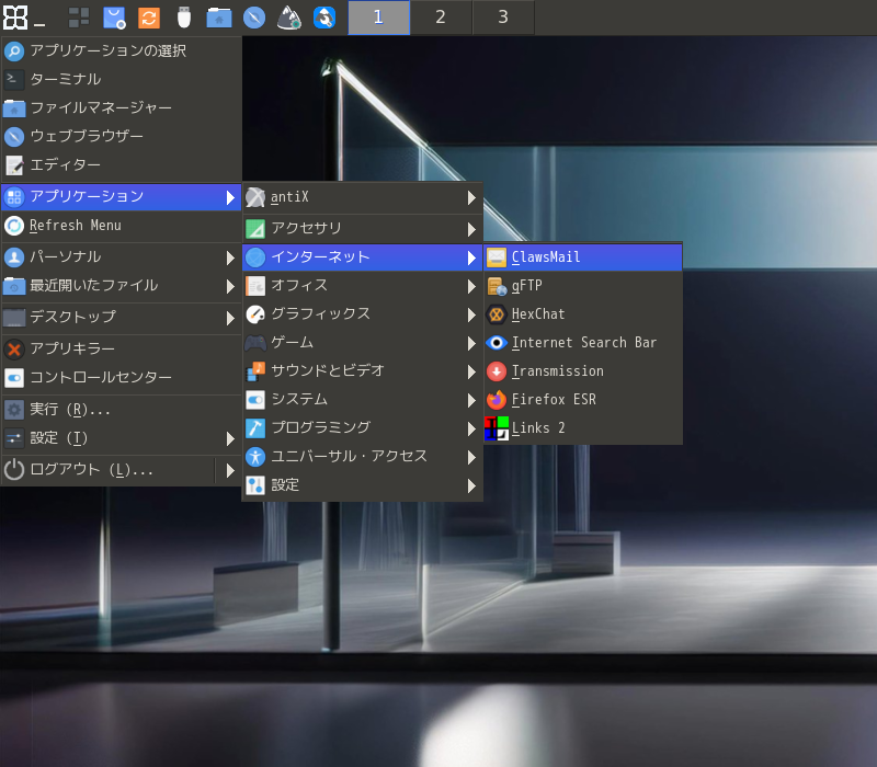 1. 概要 メールクライアントとして、「Claws Mail」がデフォルトでインストールされています。 日本語化されていますので、そのまま使えます。 2. 起動 「スタート」→「アプリケーション」→「インターネット」→「Claws Mail」