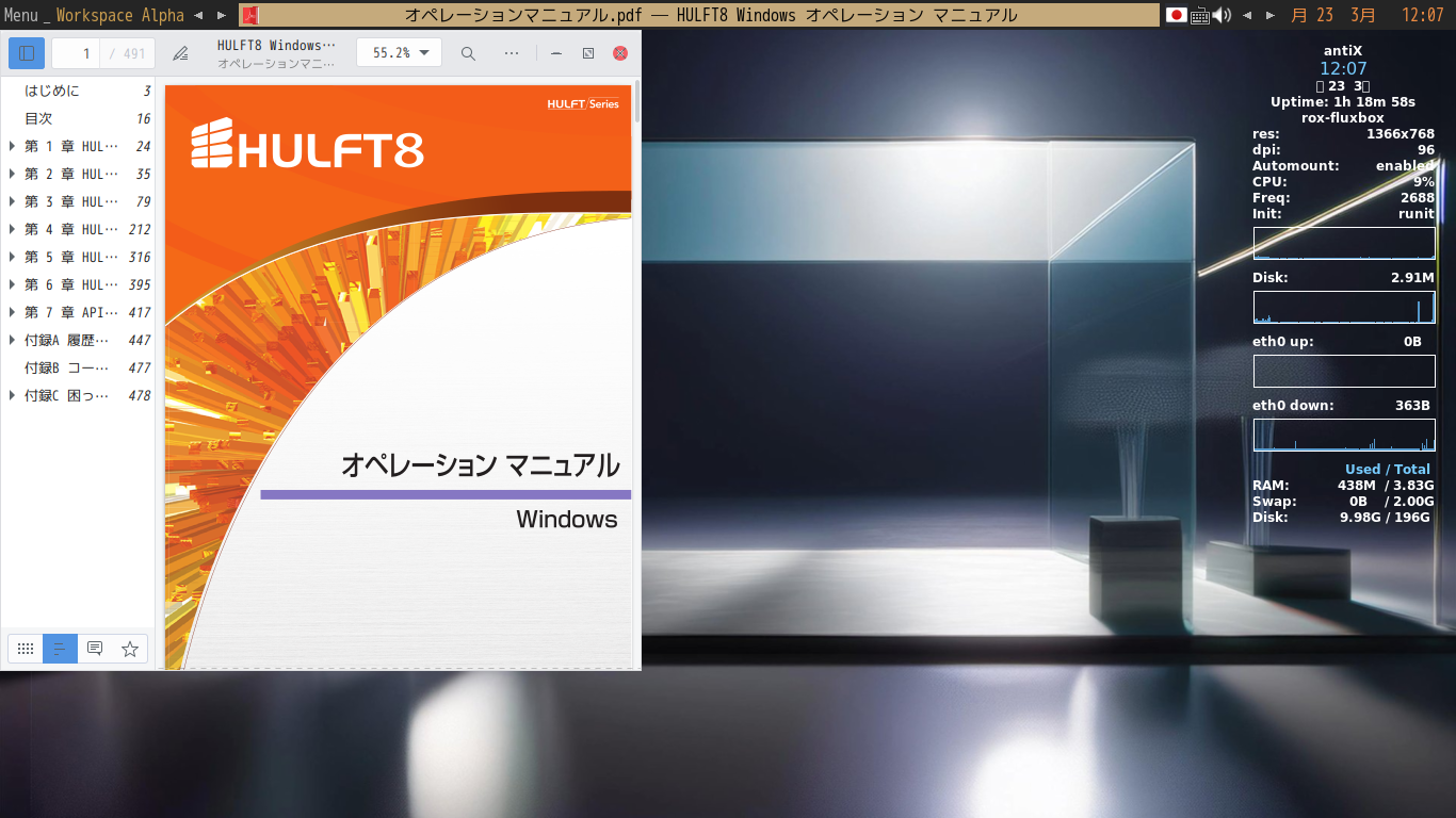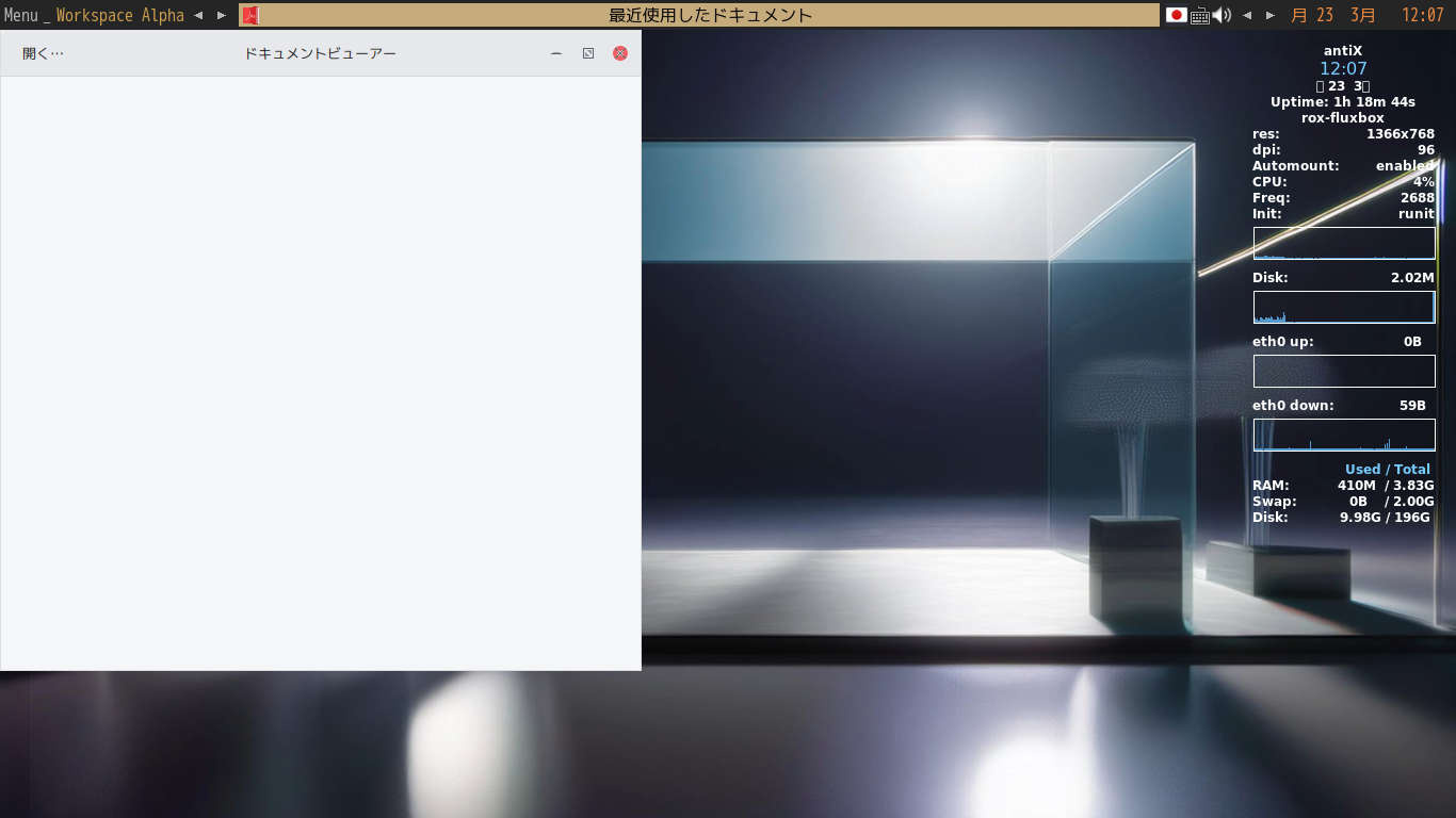 ドキュメントビューア(と言うよりは、「.pdf」ビューア?)として「Evince」を使用します。