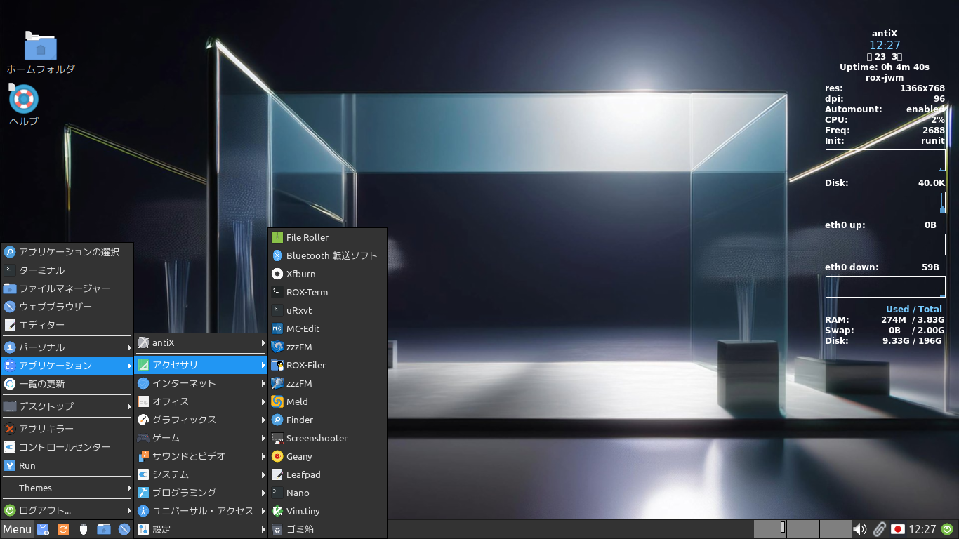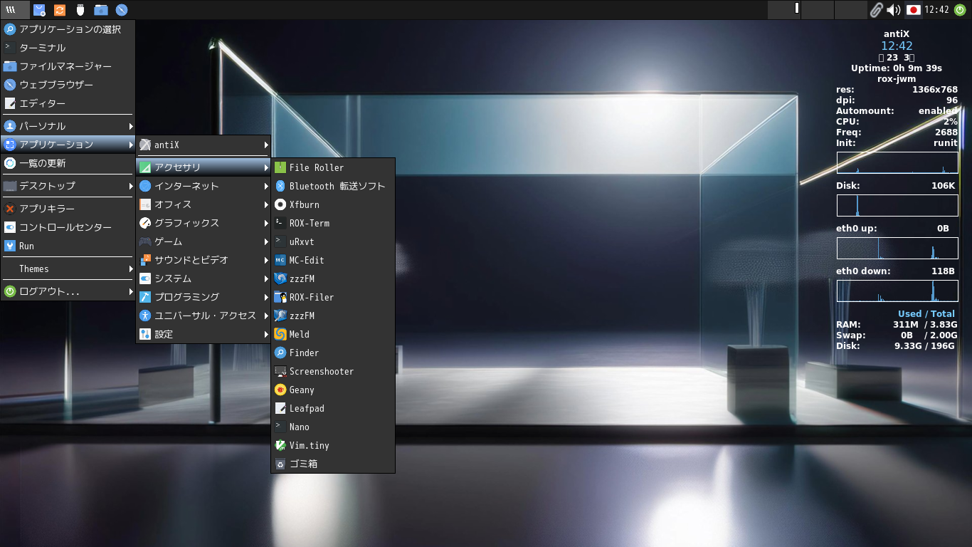 「antiX 26」の共通的な操作やカスタマイズ方法については、「antiX - 26 - 共通事項」をご参照ください。