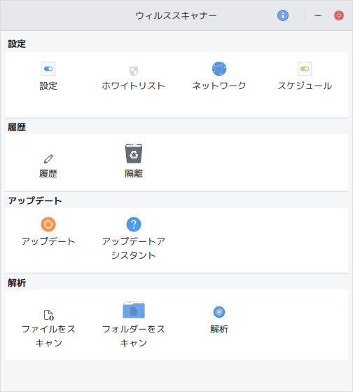 1. 概要 「ClamTk」は、「GUI」で操作するアンチウィルスソフトです。 2. インストール 「Synaptic」で、「clamtk」を検索して、インストールします。 3. 起動 「スタート」→「アプリケーション」→「アクセサリ」→「ClamTk」