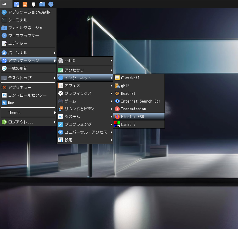 1. 概要 ブラウザとして、「Firefox」が、デフォルトでインストールされています。 2. 起動 「スタート」→「アプリケーション」→「インターネット」→「Firefox」