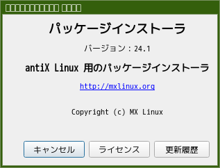「CopyRight(C)MX Linux」と書いてありますので、「MX パッケージインストーラ」であることがわかります。