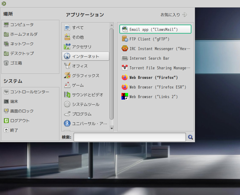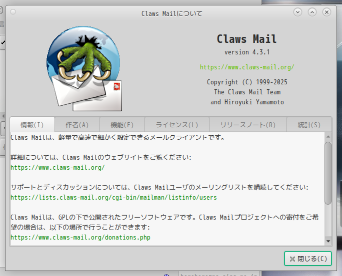 1. 概要 メールクライアントとして、「Claws Mail」がデフォルトでインストールされています。 2. 起動 「スタート」→「インターネット」→「Claws Mail」