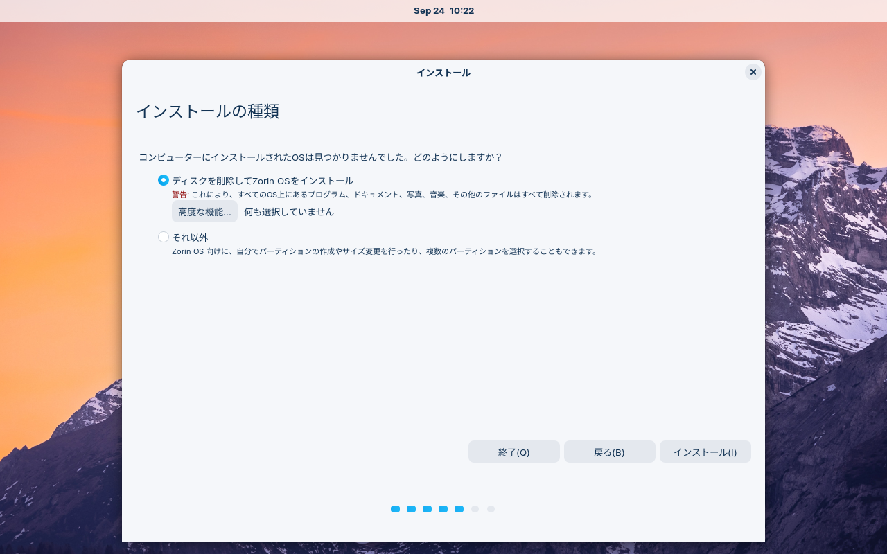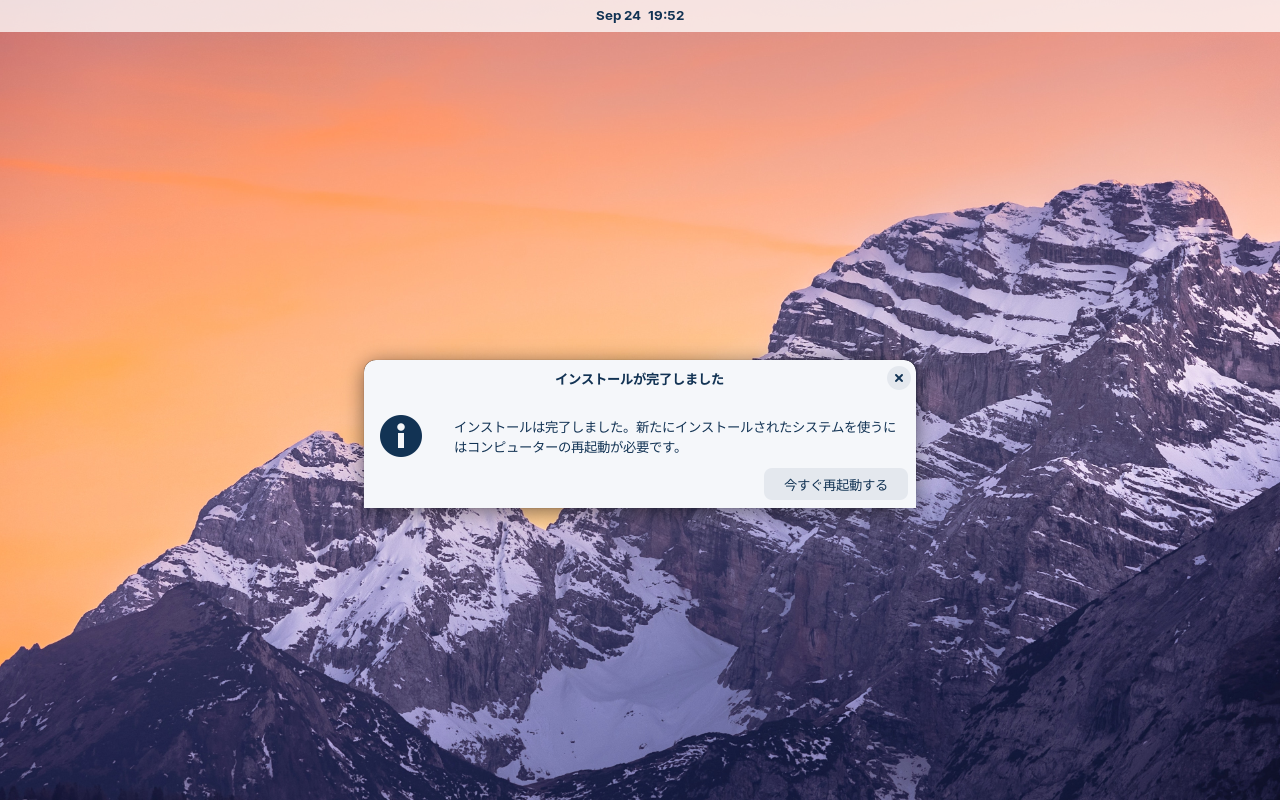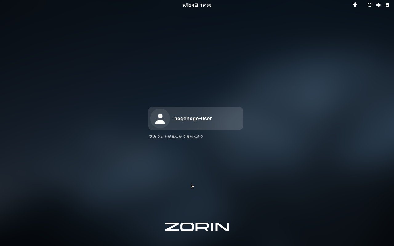 再起動後、ログイン画面が表示されればインストールは完了です。