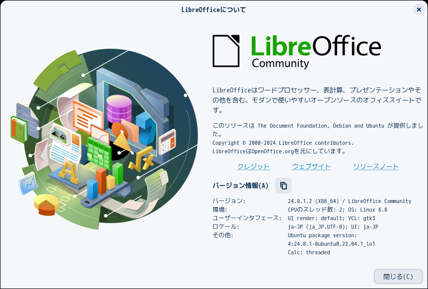 Zorin OS - 17.2 - Core GNOME -オフィススイート LibreOffice