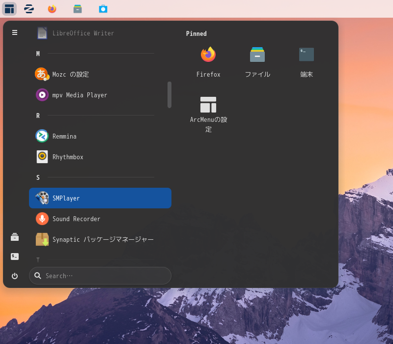 「Synaptic」で、「smplayer」を検索して、インストールします。