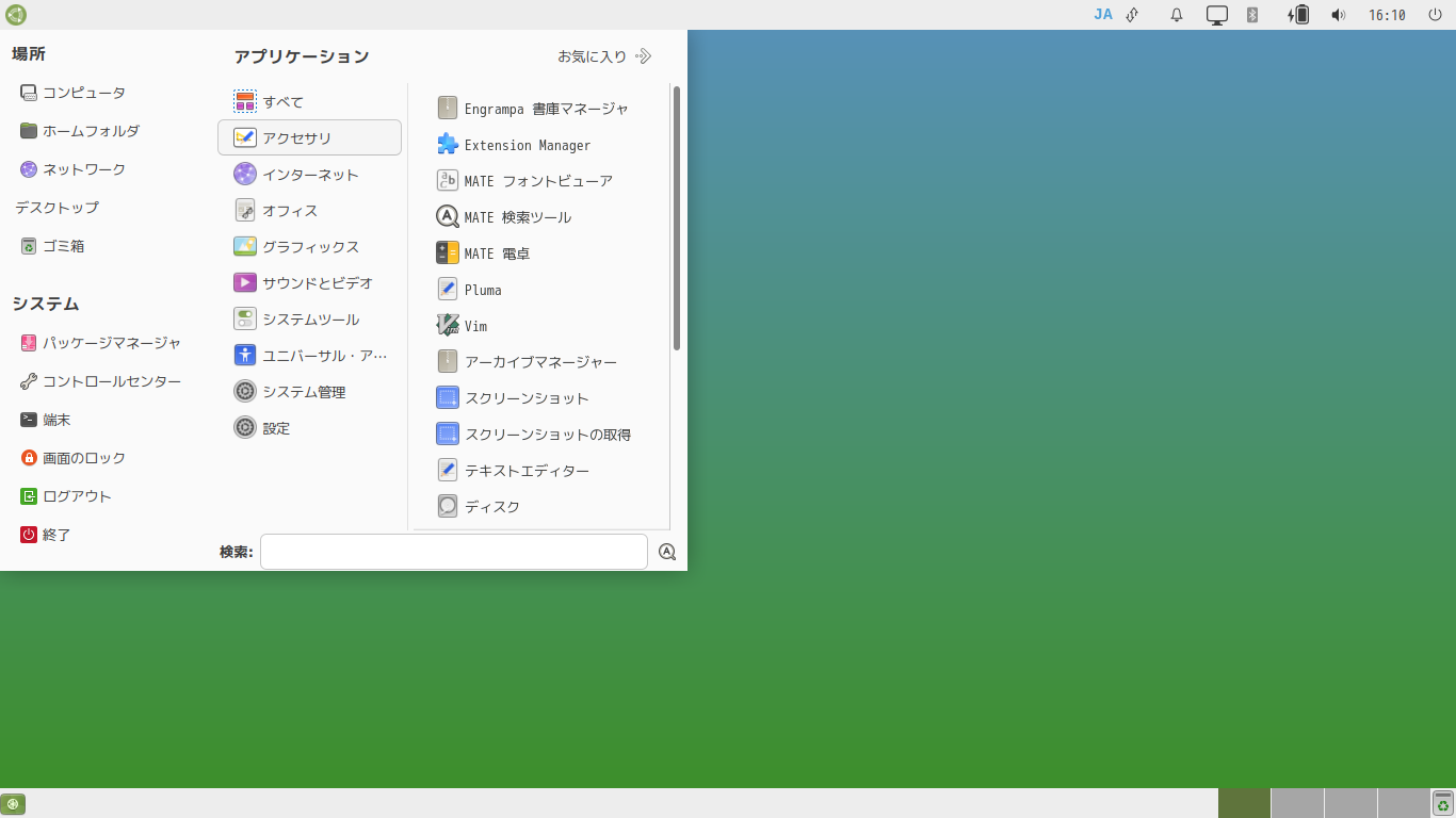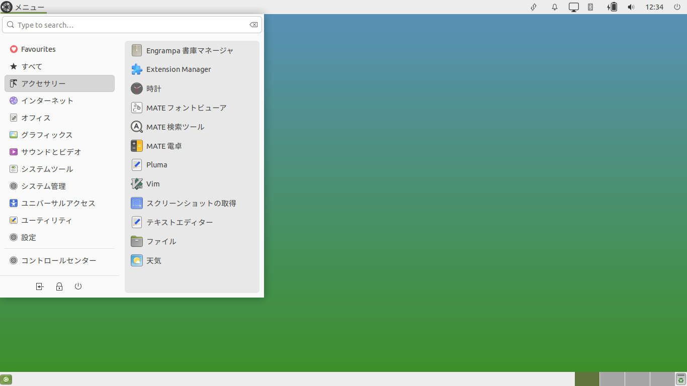 メニューは、前ページで、「Advanced MATE Menu」をインストールしていますので、「Brisk Menu」と置き換えて、使用します。