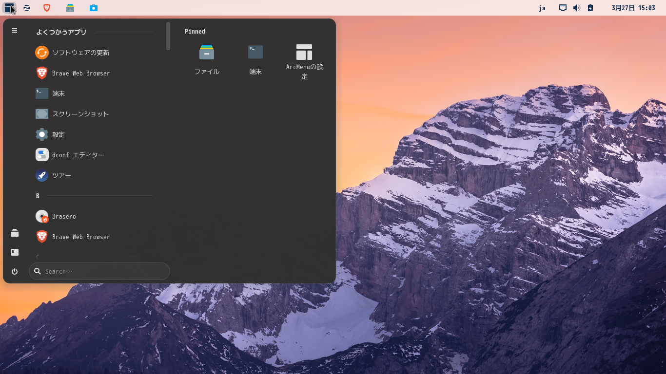デフォルトのデスクトップ・メニューです。