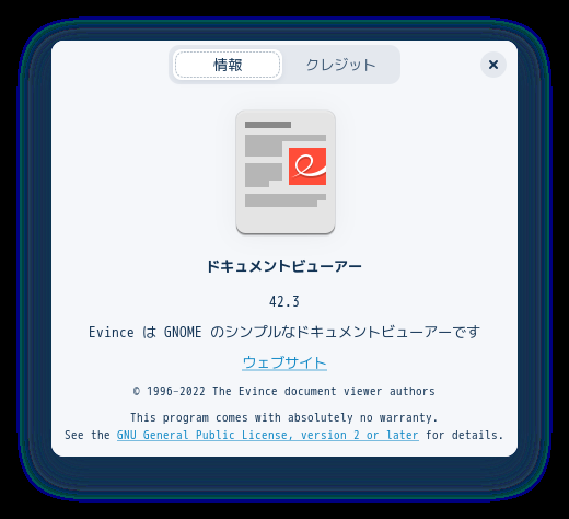 1. 概要 ドキュメントビューアとして、「Evince」を使用します。 「Evince」は、デフォルトでインストールされています。 2. 起動 「スタート」→「ド」→「ドキュメントビューアー」(名を名乗れ!)