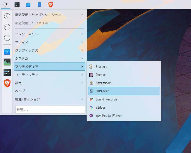 1. 概要 マルチメディアプレイヤーとして「SMPlayer」をインストールして使用します。 2. インストール 「Synaptic」で、「smplayer」を検索して、インストールします。 3. 起動 「スタート」→「マルチメディア」→「SMPlayer」