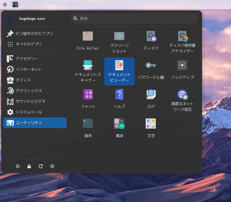 1. 概要 ドキュメントビューアとして、「Evince」を使用します。 「Evince」は、デフォルトでインストールされています。 2. 起動 「スタート」→「ユーティリティ」→「ドキュメントビューアー」(名を名乗れ!)