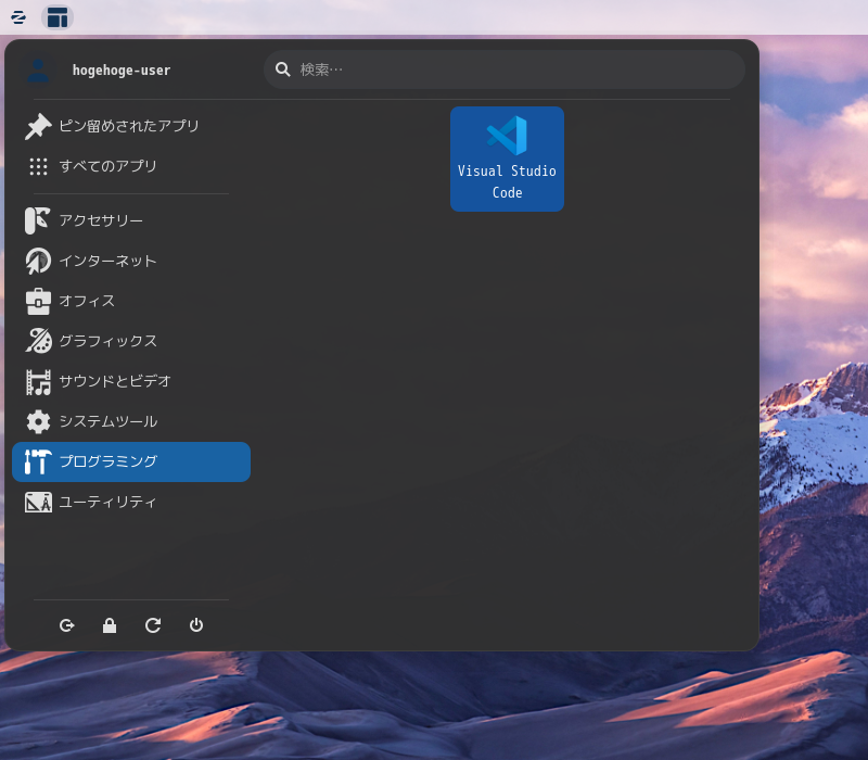 「gnome-software」で、「visual」を検索して、「Visual Studio code」をインストールします。