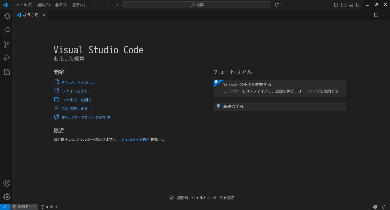 「スタート」→「プログラミング」→「Visual Studio Code」