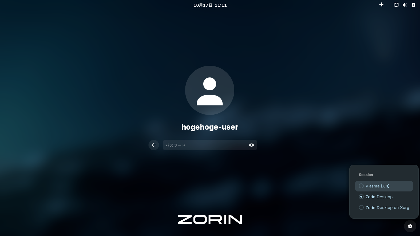 別途、「konsole」を検索して、インストールします。 インストールが終わったら、再起動します。 再起動後、ログイン画面で、「Plasma(X11)」を選択すると、「KDE」のデスクトップへログインできます。