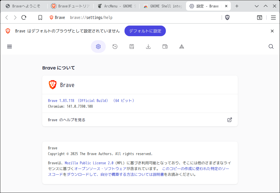 1. 概要 ブラウザとして、「Brave」がデフォルトでインストールされ、日本語化されています。 2. 起動 「スタート」→「インターネット」→「Brave」