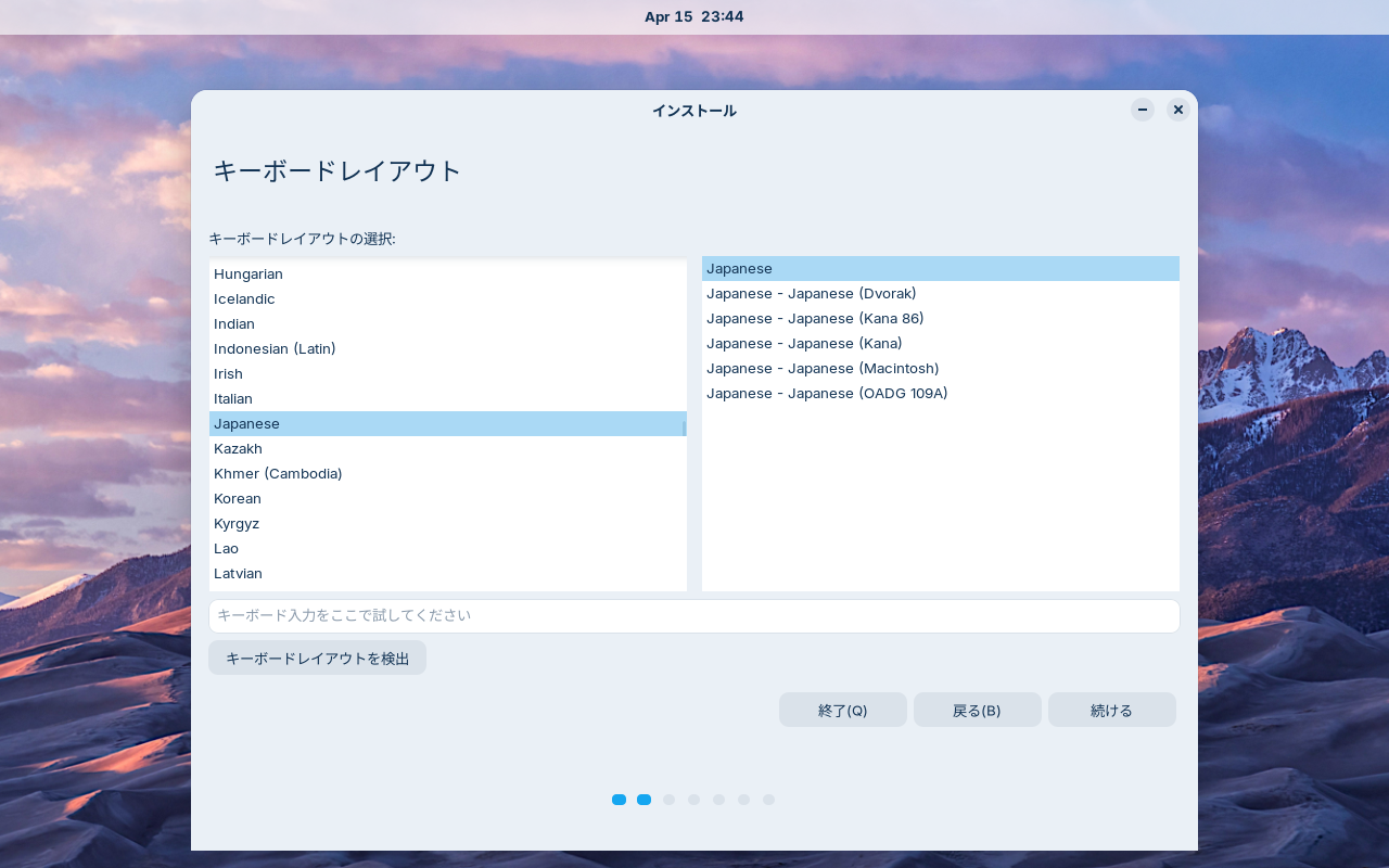使用しているキーボードレイアウトを選択して。