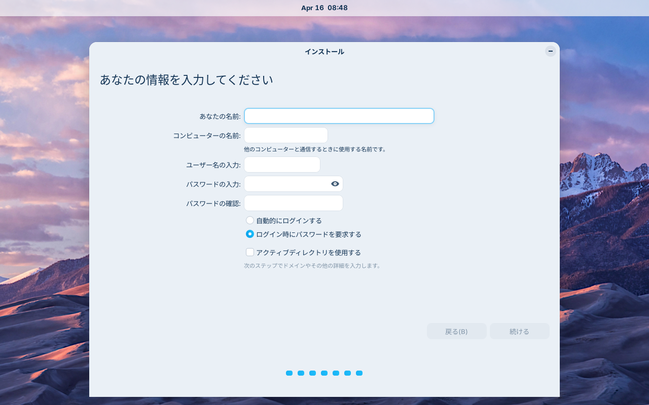 再起動後、ログイン画面が表示されればインストールは完了です。