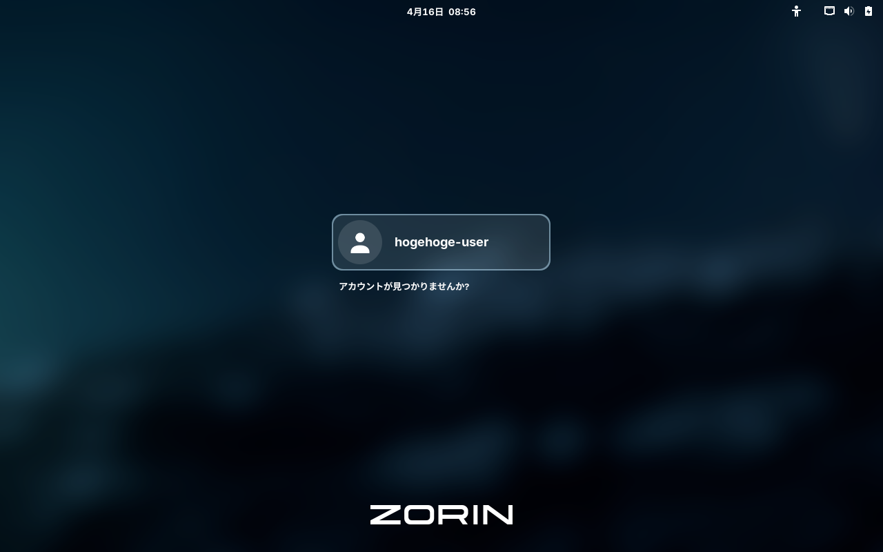 1. 概要 「Core」エディションは、「GNOME」がデスクトップです。 2. インストール インストールの手順については、「Linux - Zorin OS - 18.1 - 共通事項」をご参照ください。 ログイン画面が表示されれば、インストールは、完了です。