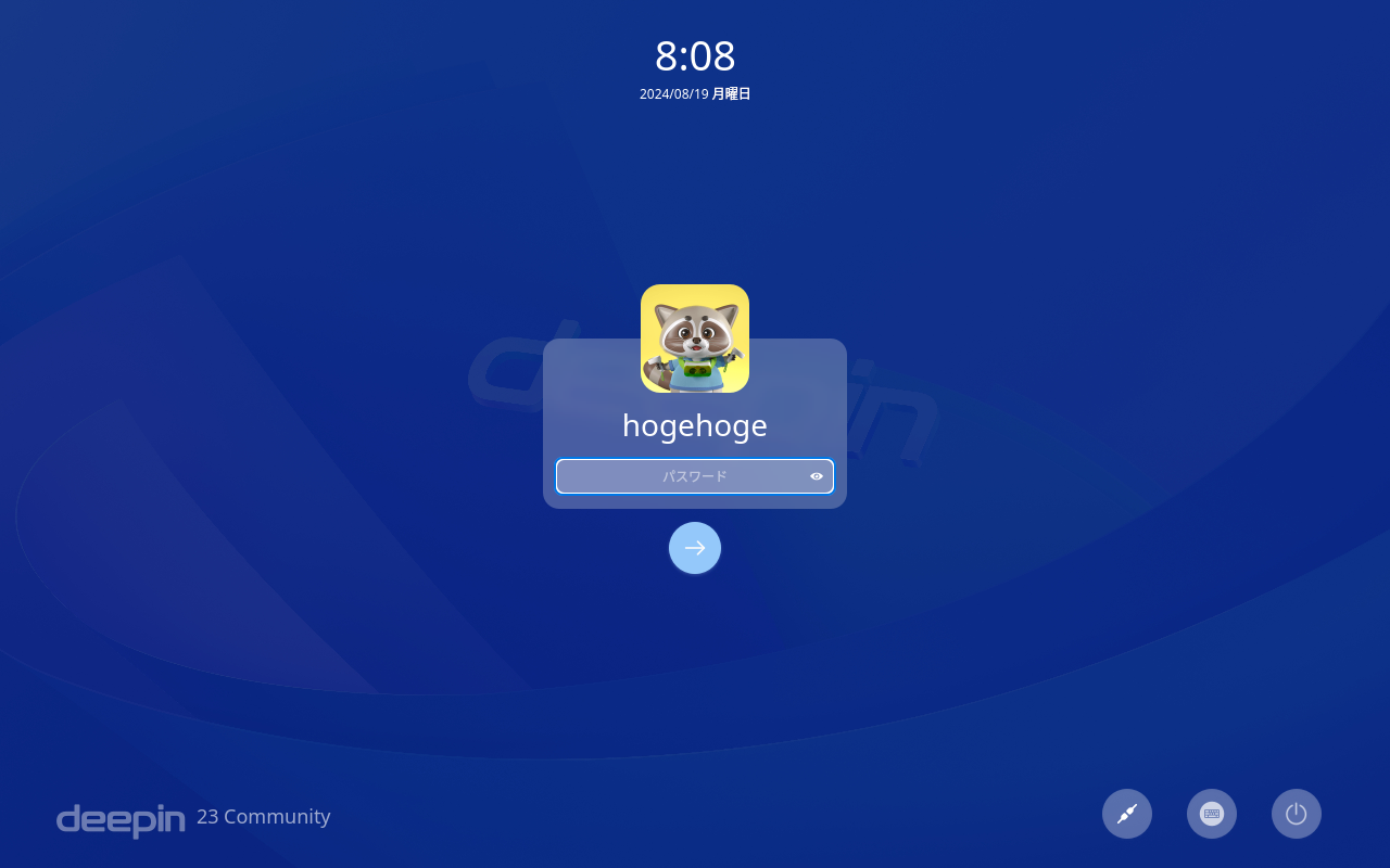 1. インストール インストールに関しては、「Linux - deepin - 23 - deepin -共通事項」をご参照ください。 ログイン画面が表示されれば、インストールは完了です。