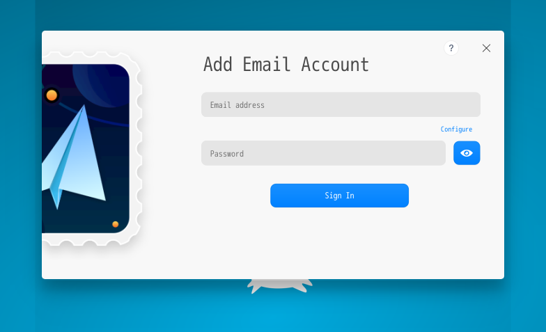 初回起動時は「メールアカウント設定」が起動します。 起動直後の状態です。 2024年8月20日の時点で、下記のバージョンでした。 アカウントの設定や操作に関しては、「メールクライアント - XFCE -mail」をご参照ください。 |