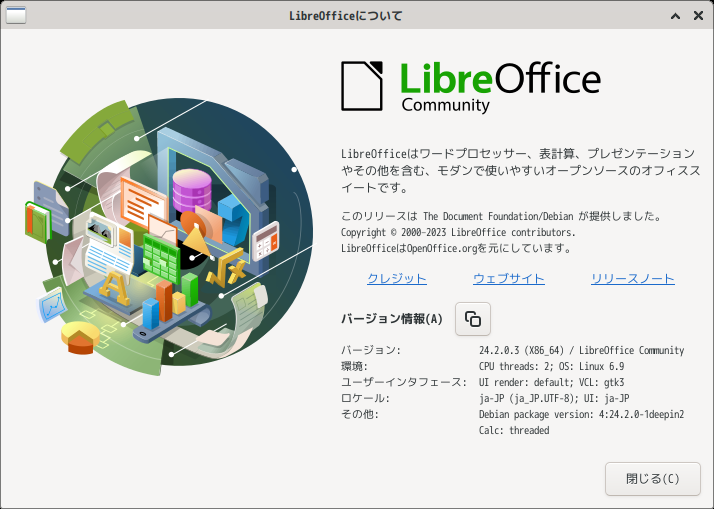 deepin - 23 - XFCE -基本操作 - オフィススイート LibreOffice