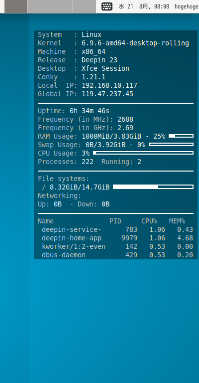 「Conky」に関する説明は、「Conky - Wikipedia」をご参照ください。