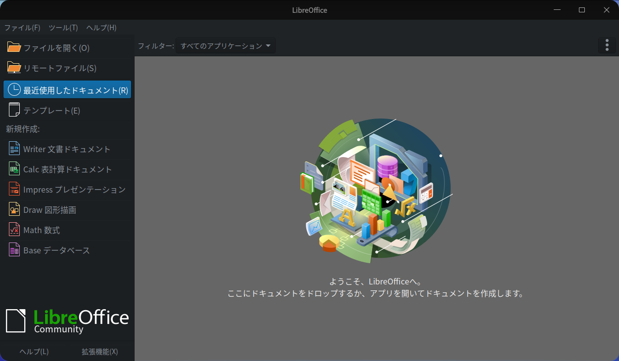 操作方法等については「オフィススィート LibreOffice」をご参照ください。