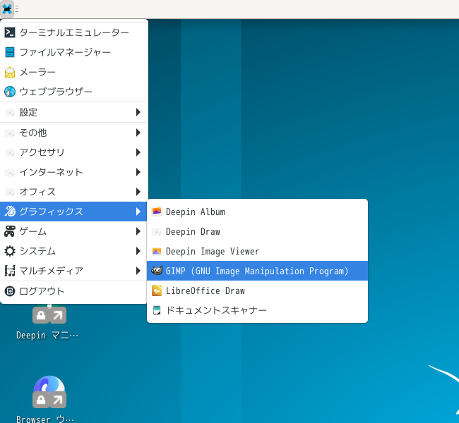deepin - 23.1 - XFCE -画像編集ソフト GIMP