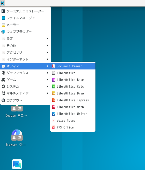 1. 概要 ドキュメントビューアとして「deepin-reader」を使用します。 「deepin-reader」は、デフォルトでインストールされています。 2. 起動 「スタート」→「オフィス」→「Document Viewer」