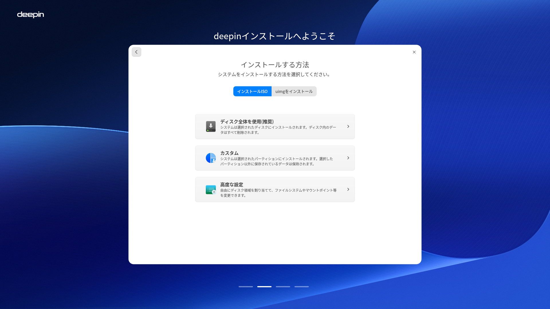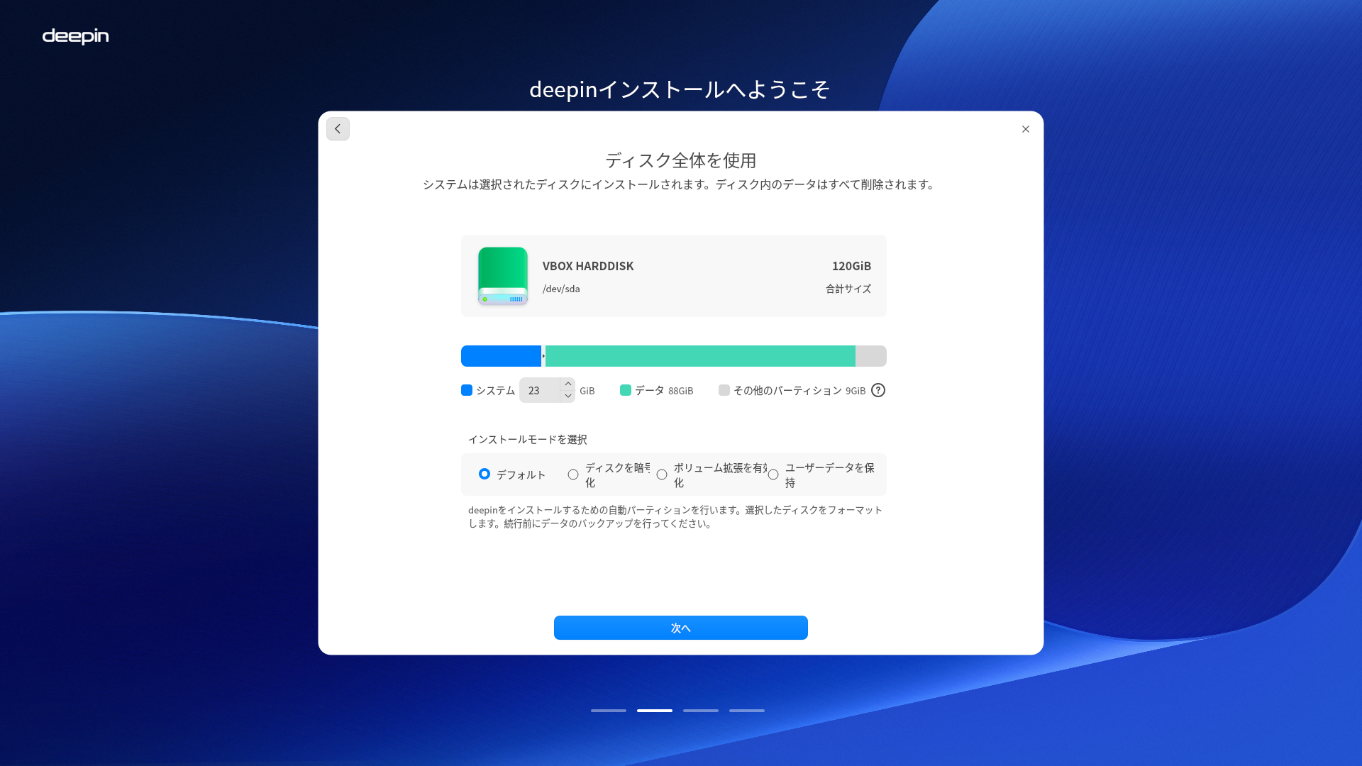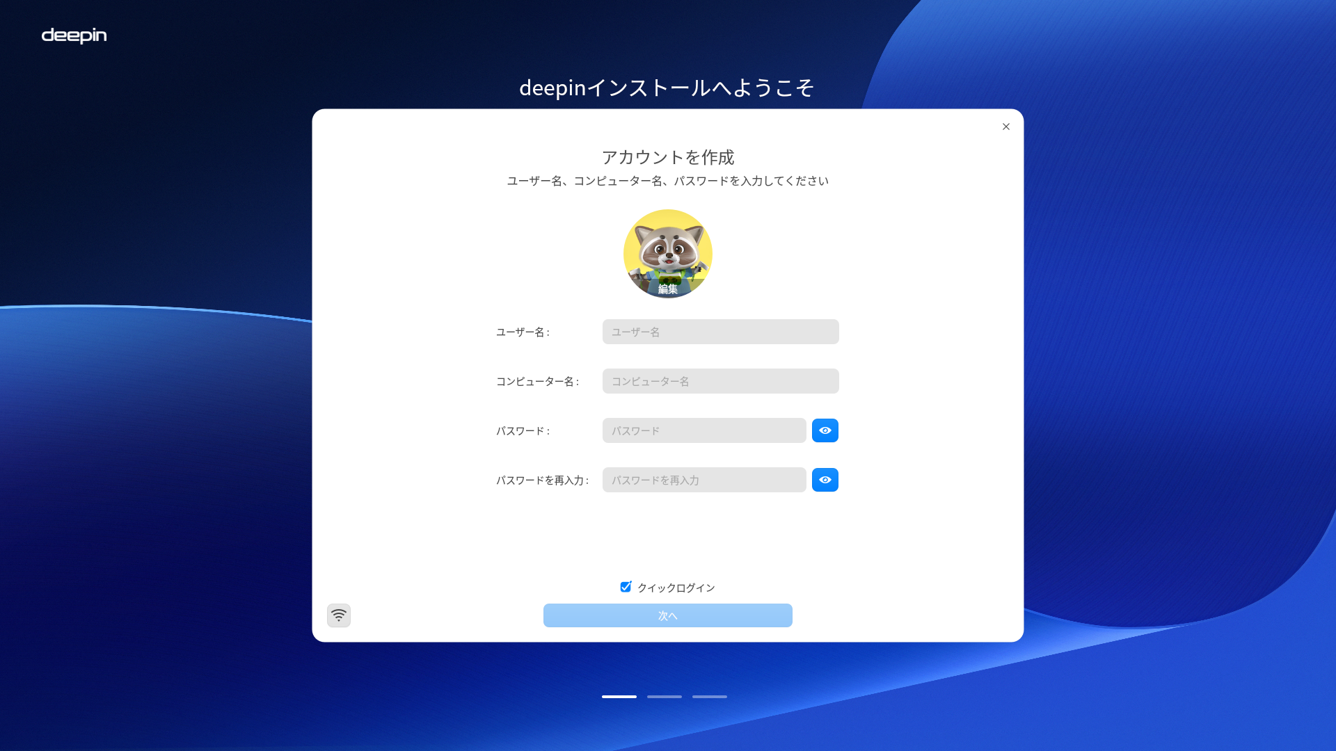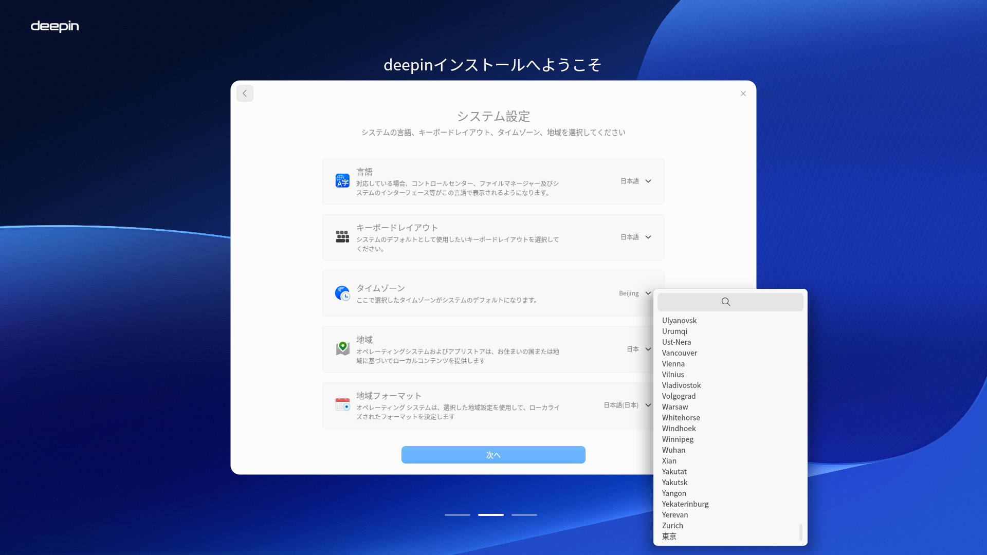 「deepin」のデフォルトのデスクトップ環境は、「deepin」ですので、「deepin」のデスクトップ環境をインストールすることになります。