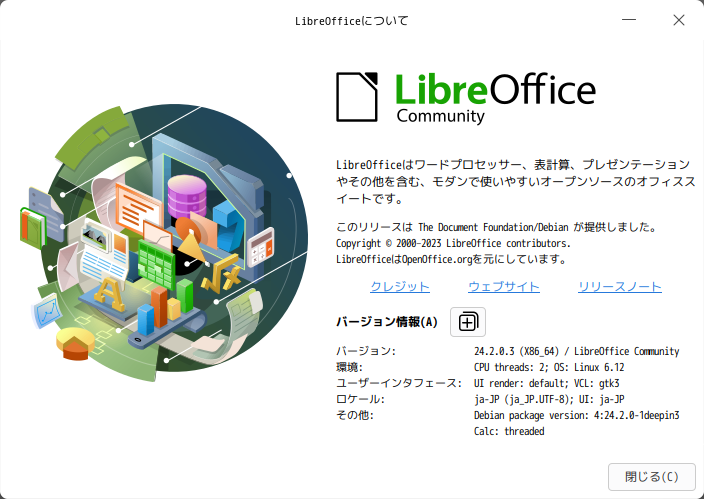 操作方法等については「オフィススィート LibreOffice」をご参照ください。