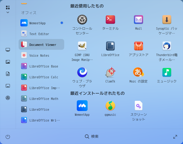 1. 概要 ドキュメントビューアとして「deepin-reader」を使用します。 「deepin-reader」は、デフォルトでインストールされています。 インストールされていない場合も起動すれば、自動でインストールされます。 2. 起動 「スタート」→「オフィス」→「Document Viewer」
