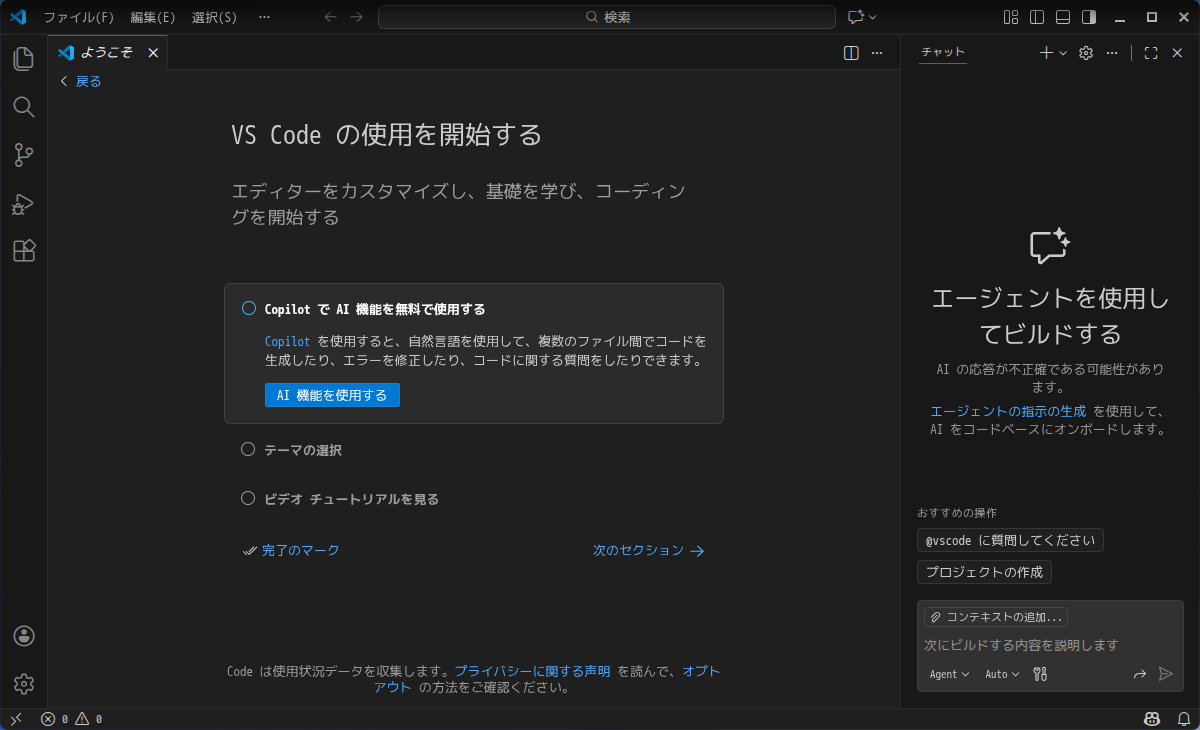 1. 概要 開発環境として「Visual Studio Code」を使用します。 2. インストール 「アプリストア」で、「visual studio」を検索して、インストールします。 3. 起動 「スタート」→「開発」→「Visual Studio Code」