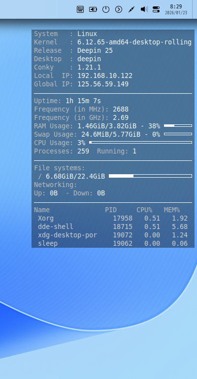 deepin - 25.0.10 - deepin -タスクマネージャー Conky