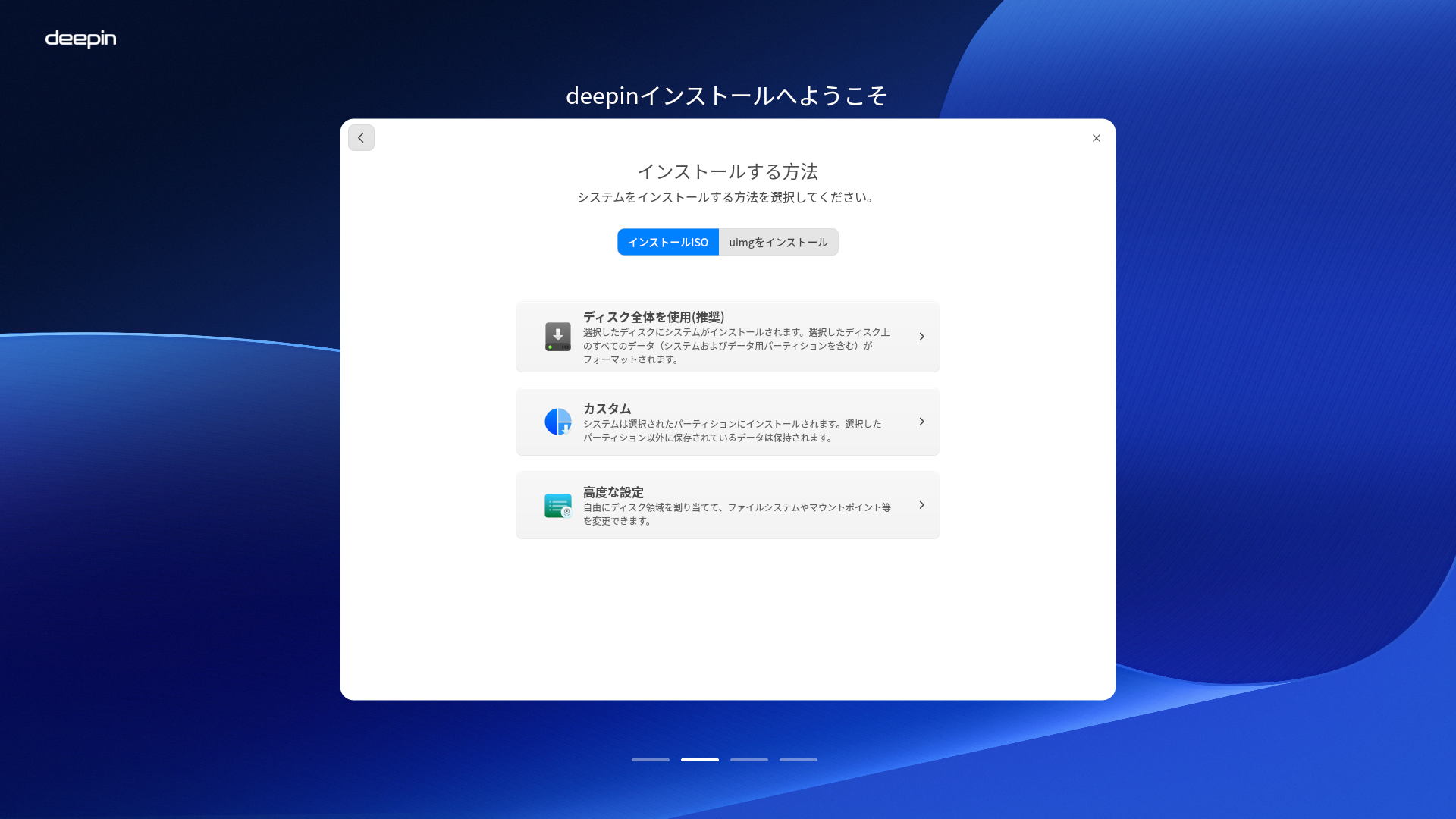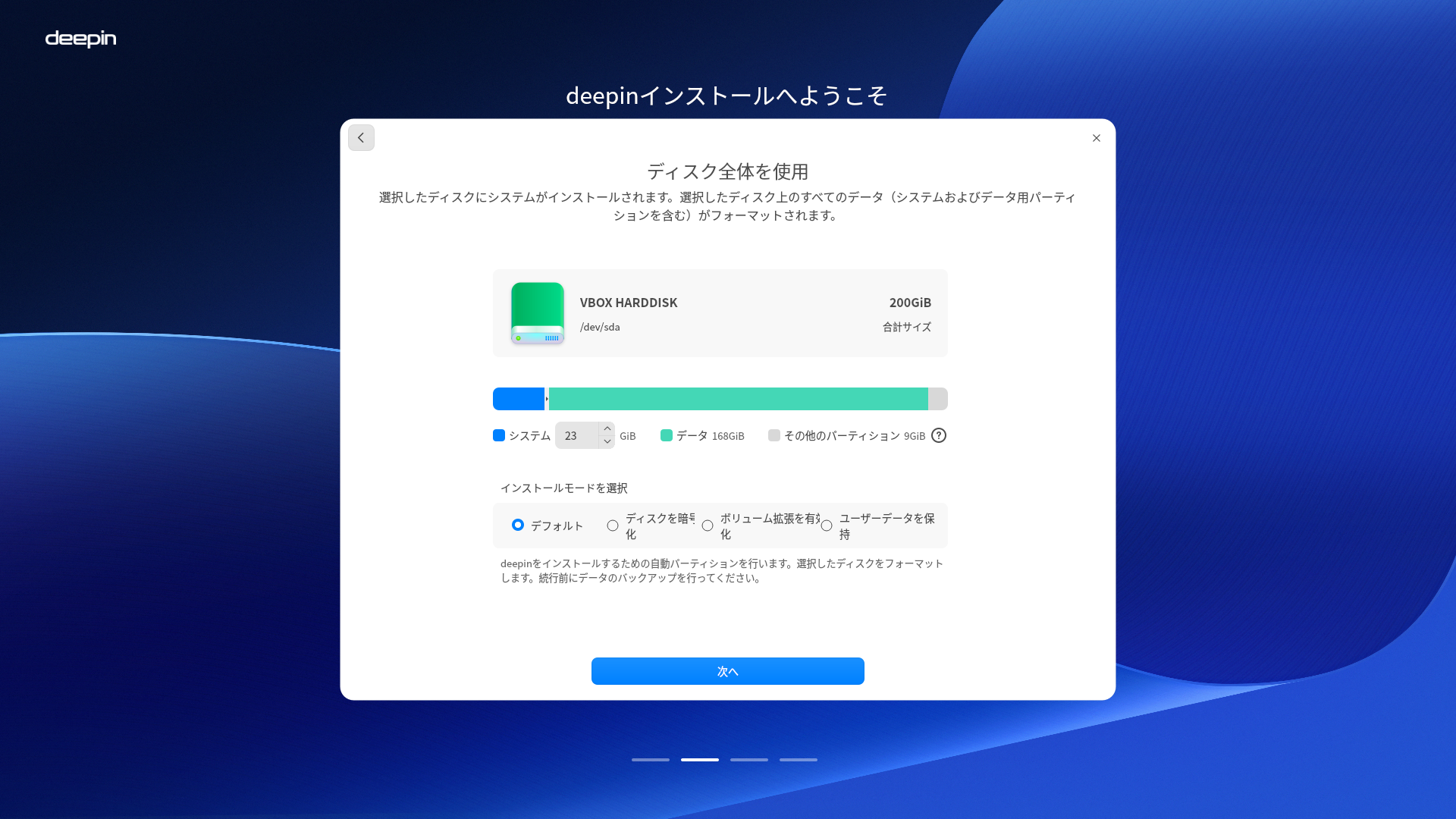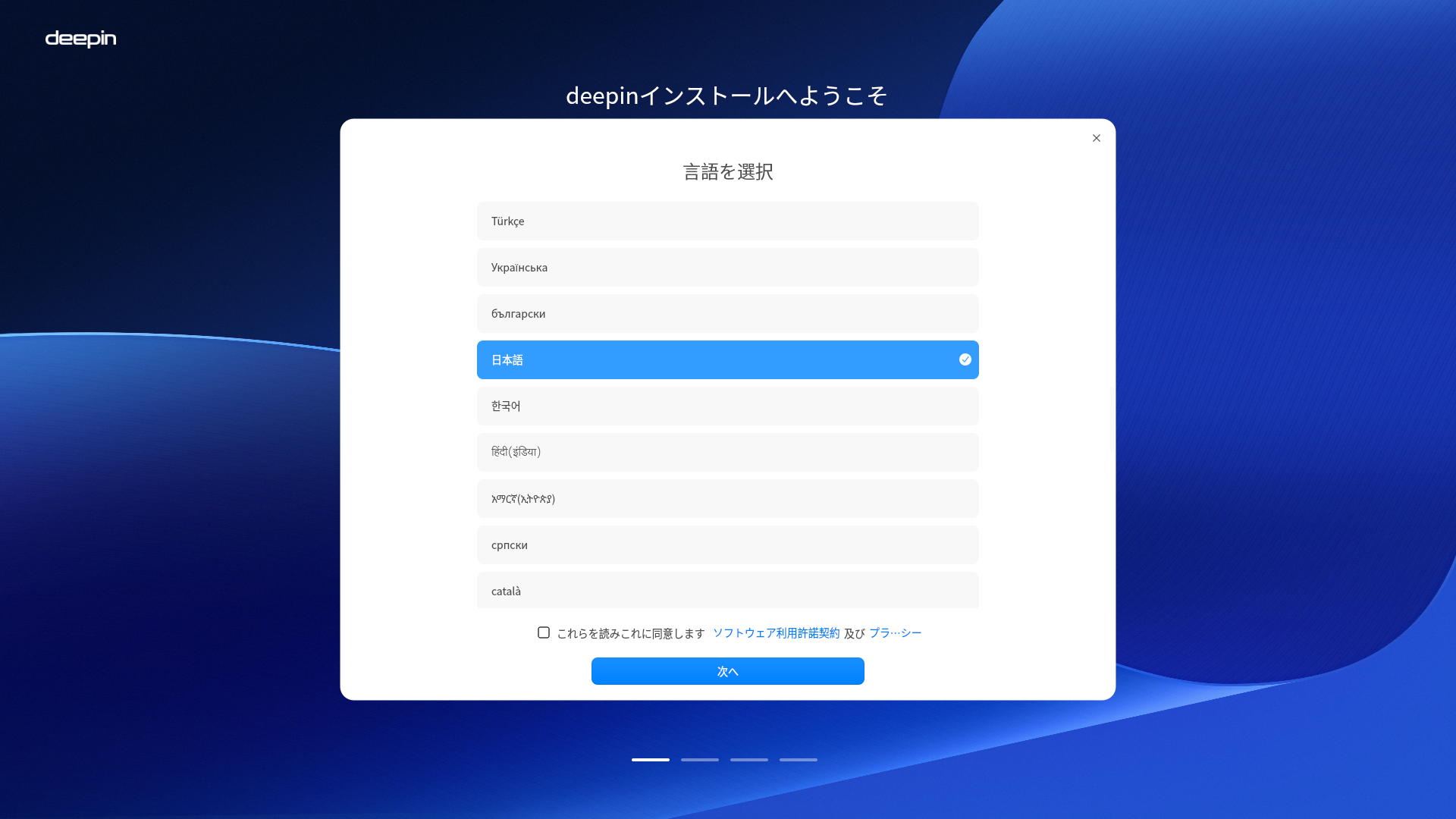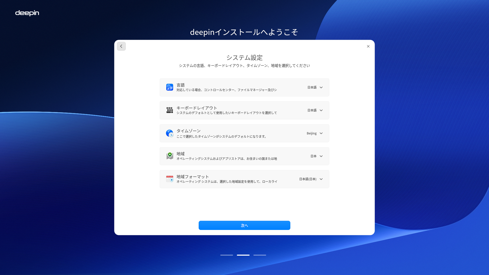 「deepin」のデフォルトのデスクトップ環境は、「deepin」ですので、「deepin」のデスクトップ環境をインストールすることになります。