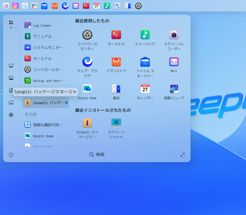 「スタート」→「システム」→「Synaptic パッケージマネージャ」