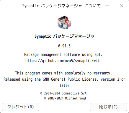「Synaptic」の操作に関しては、「Linux - 共通事項 - パッケージ管理フロントエンド」をご参照ください。