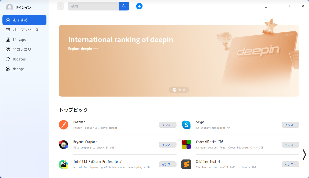 「deepin」の公式グラフィカルなパッケージ管理フロントエンドは、「deepin-app-store」です。