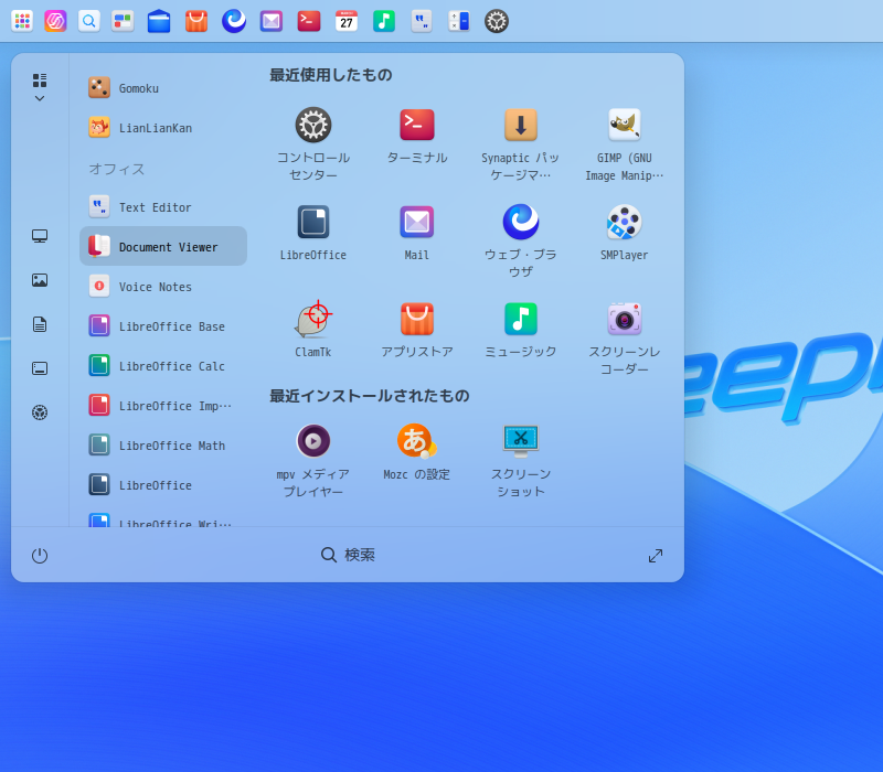1. 概要 ドキュメントビューアとして「deepin-reader」を使用します。 「deepin-reader」は、デフォルトでインストールされています。 インストールされていない場合も起動すれば、自動でインストールされます。 2. 起動 「スタート」→「オフィス」→「Document Viewer」