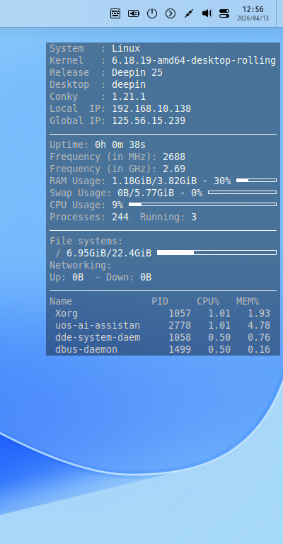 「Conky」は優れた、タスクマネージャーです。