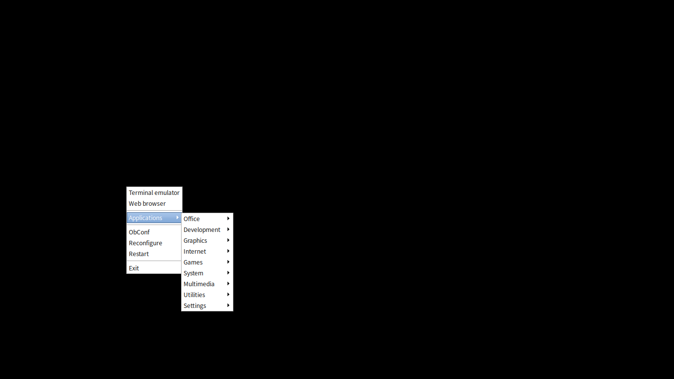 「Openbox」のデスクトップ環境としての共通的な操作に関しては、「Openbox - 共通事項」をご参照ください。