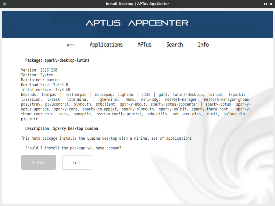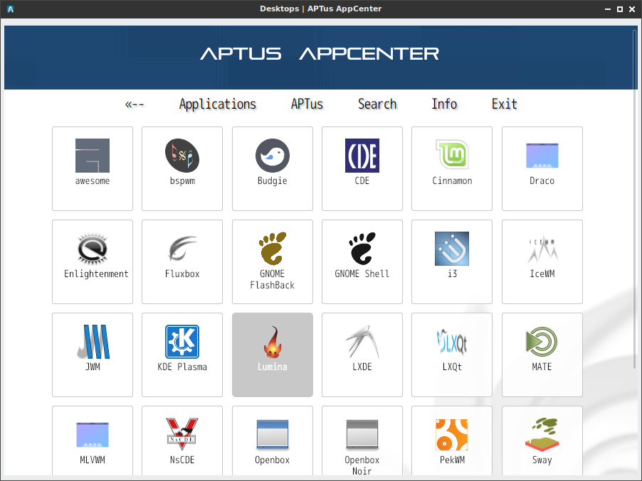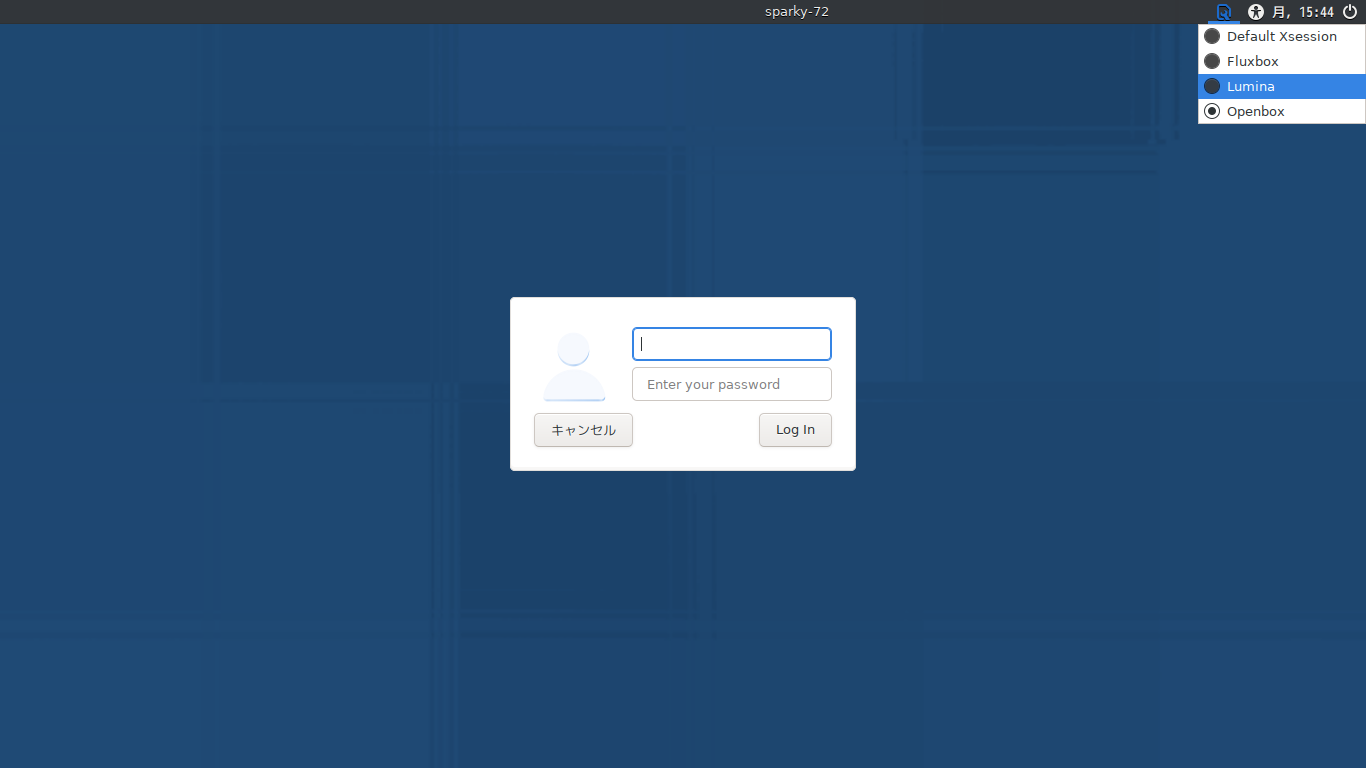 「Lumina」は、インストールメディア「sparkylinux-5.12-x86_64-minimalgui.iso」を使用して、「Openbox」をインストール後、「Openbox」の操作でインストールします。