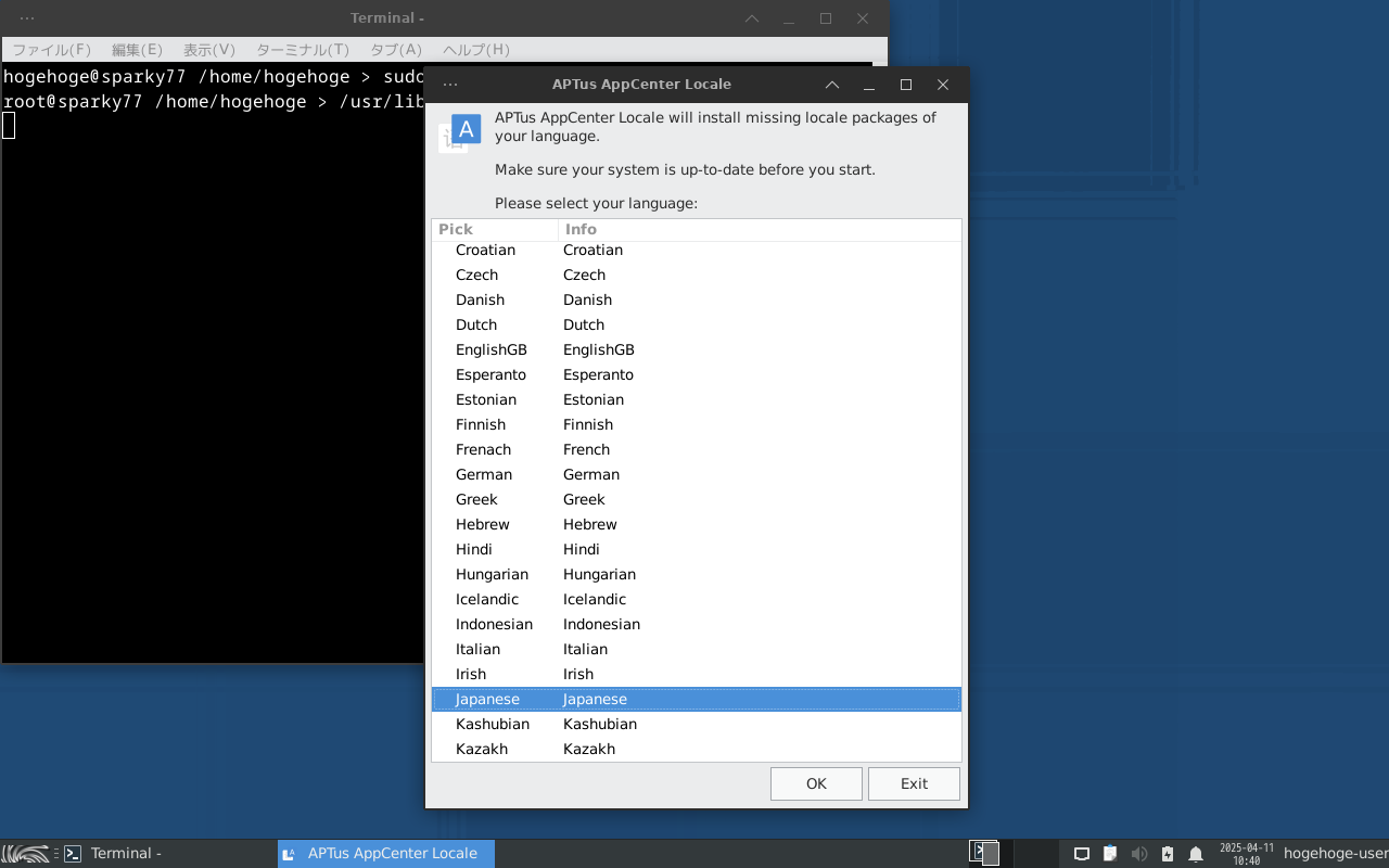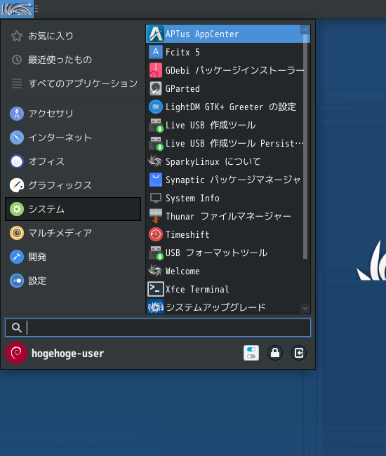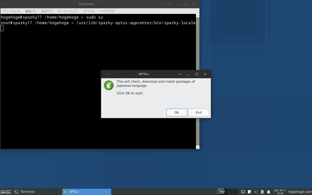 「SparkyLinux」では、「APTus」を利用して、言語パッケージをインストールできます。