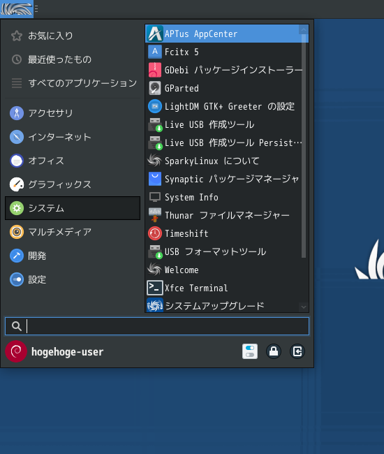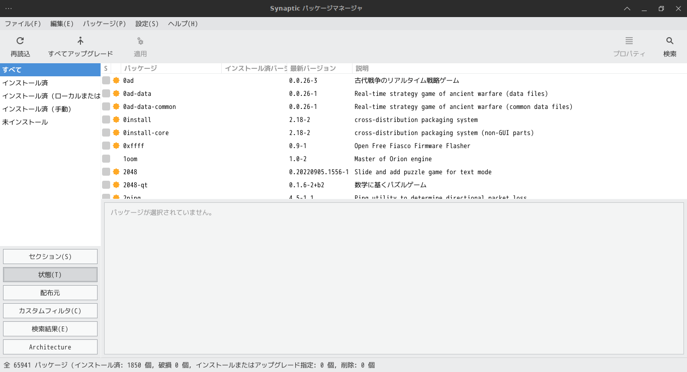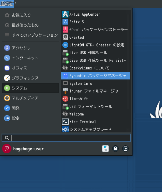 SparkyLinux - 7.7 - XFCE - パッケージ管理フロントエンド