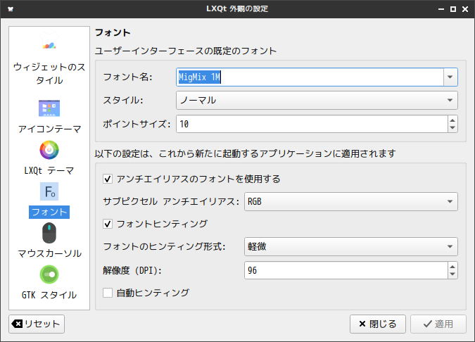 「LXQt」の共通的な操作やカスタマイズ方法に関しては、「LXQt - 共通事項」をご参照ください。