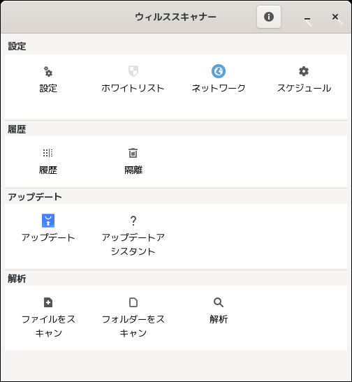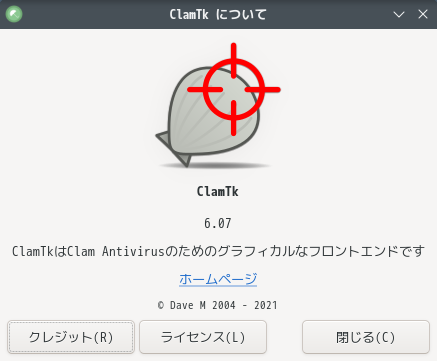1. 概要 「ClamTk」は、「GUI」で操作するアンチウィルスソフトです。 2. インストール 「Synaptic」で、「clamtk」を検索してインストールします。 3. 起動 「スタート」→「ユーティリティ」→「ClamTk」