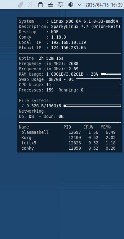詳細は、「Conky - Wikipedia」をご参照ください。