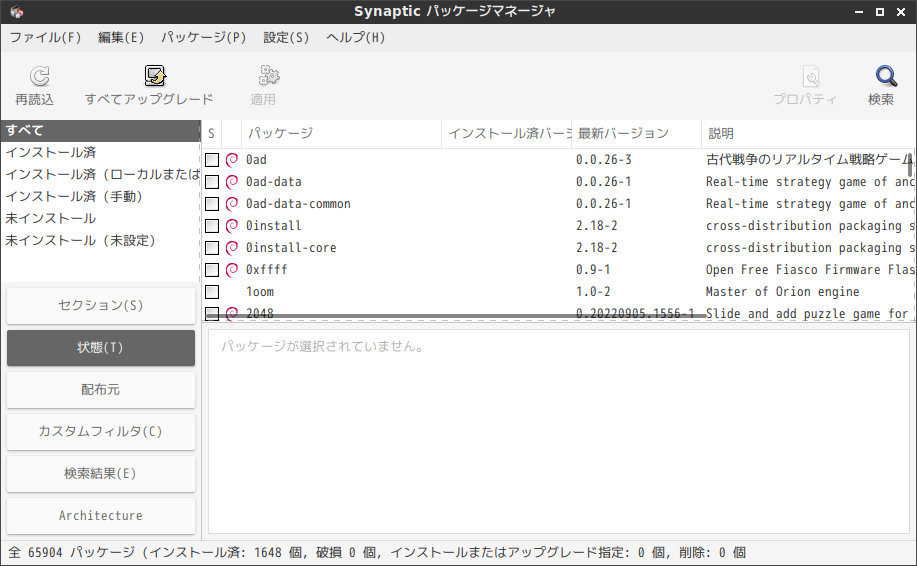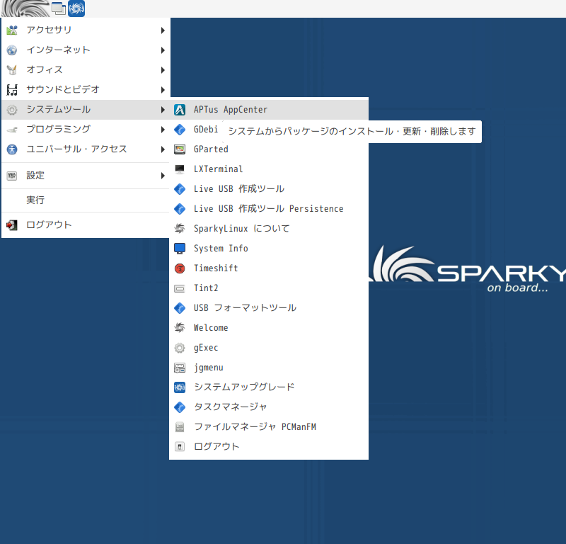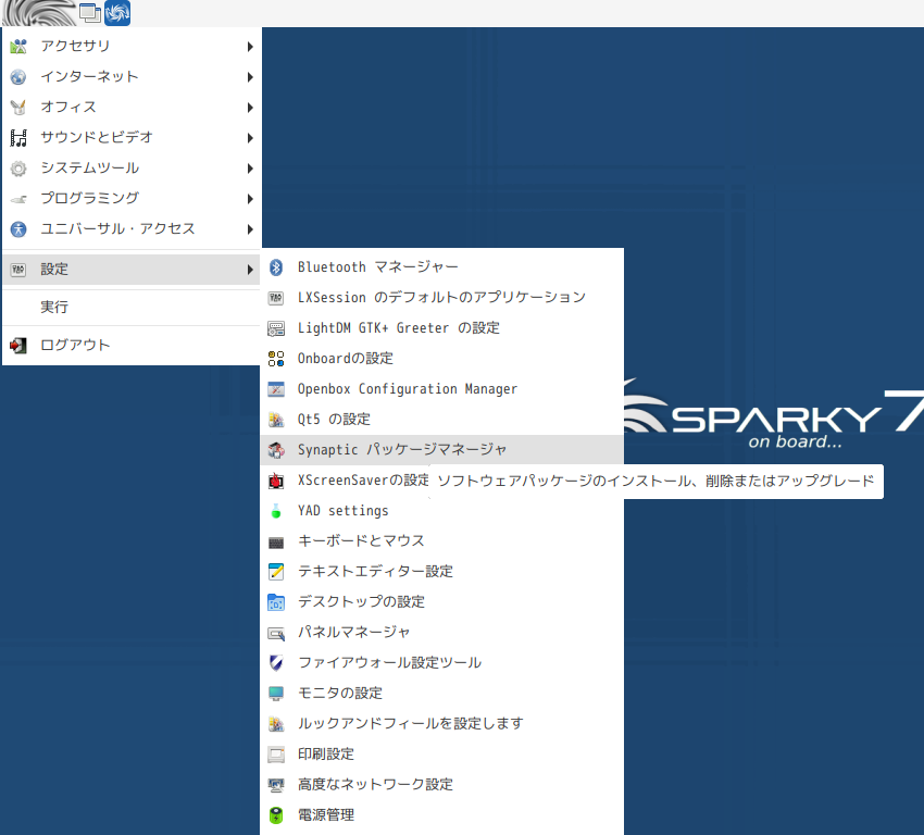 SparkyLinux - 7.7 - LXDE - パッケージ管理フロントエンド